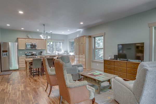 | Dining Table & Kitchen at Rapid River Retreat |