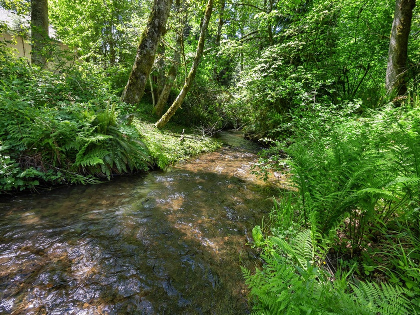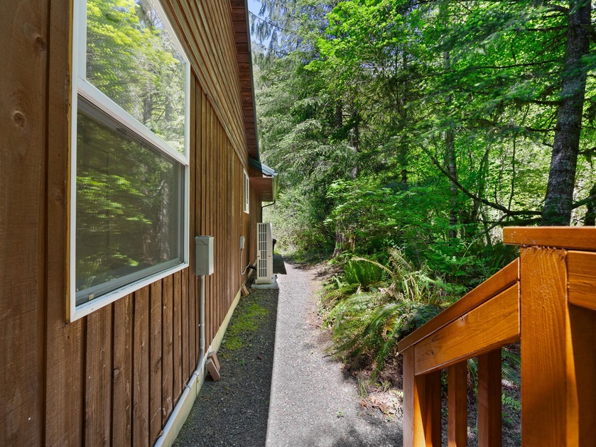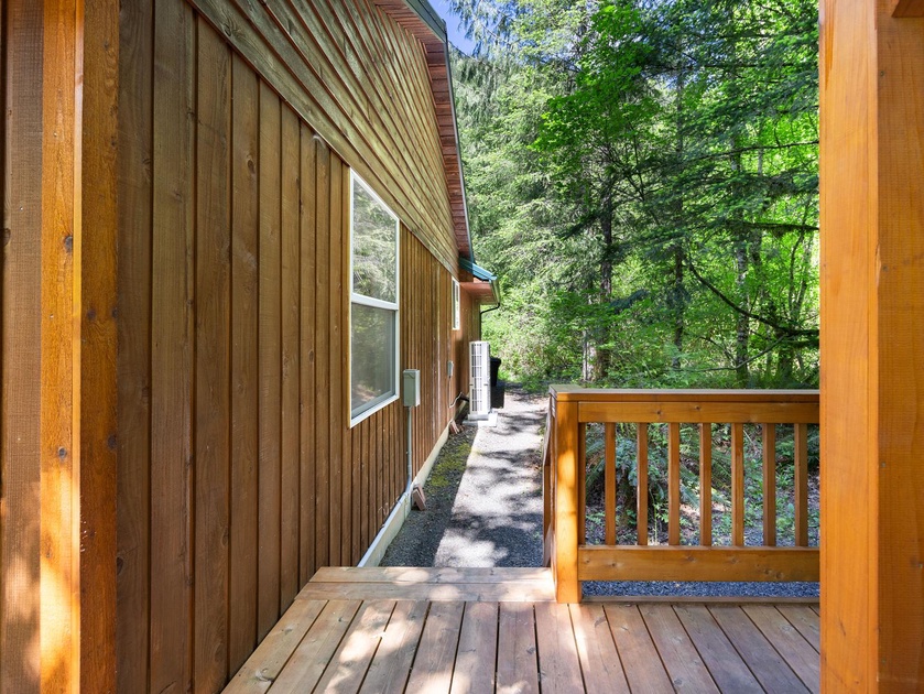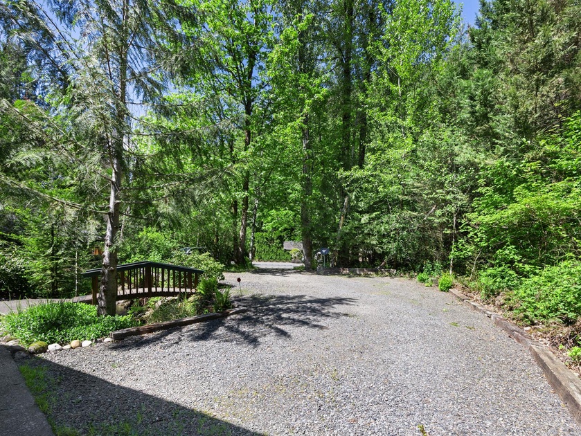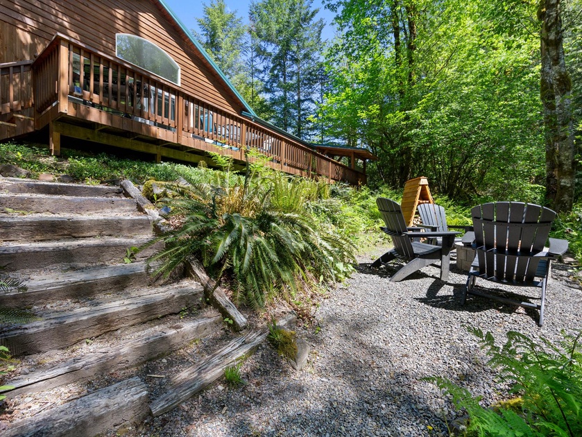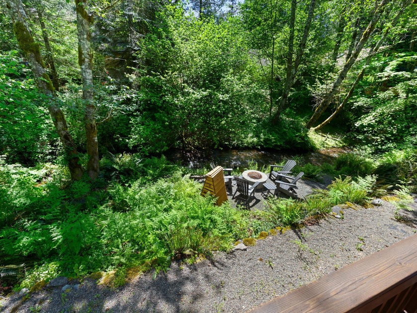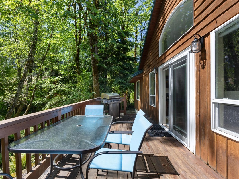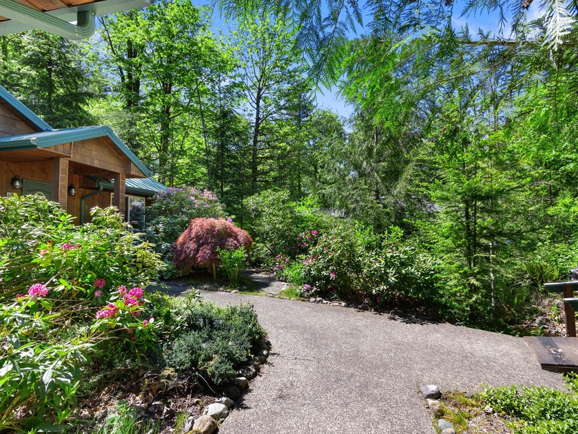 Located in Rhododendron, this home quietly sits at the end of a quiet cul-de-sac surrounded by two creeks. Just as you enter the home you will cross a footbridge over a seasonal creek. You’ll step into the light filled great room with a warm and inviting rock fireplace. The back deck over looks Hackett Creek and the wood burning creek side fire pit.
