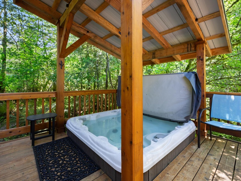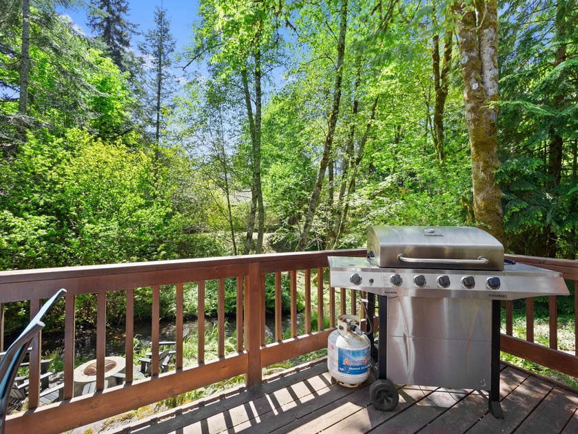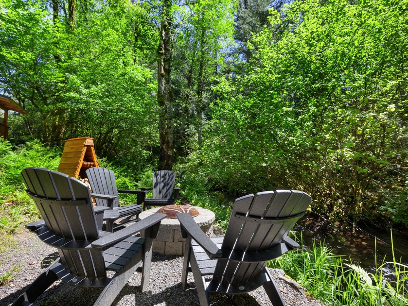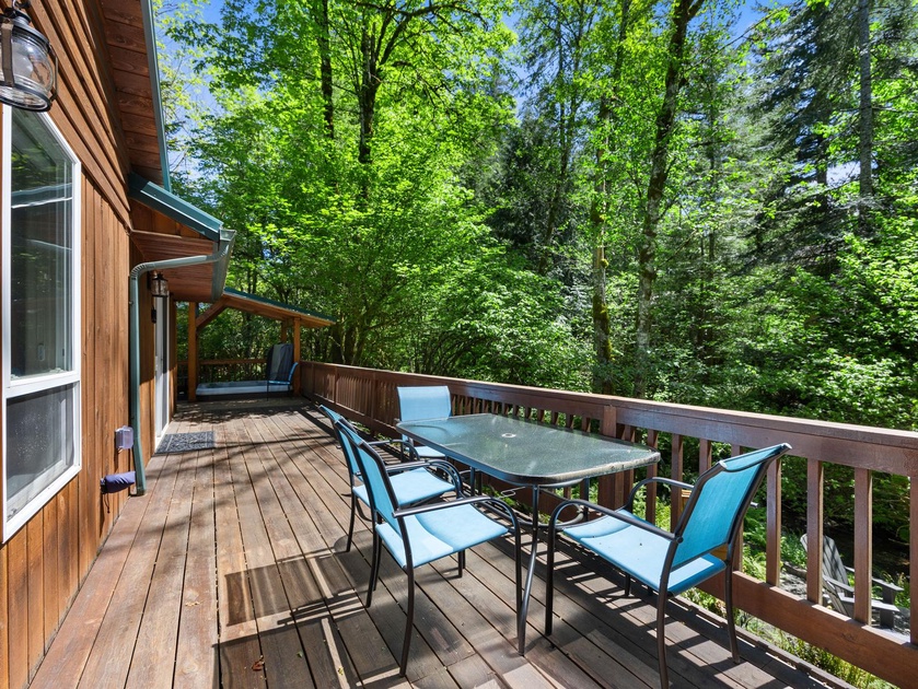 Step out to the creek facing back porch for a BBQ and dine at the patio table while the creek babbles on by. You will want to soak in the private hot tub with creek views after your day’s adventure, or roast marshmallows and tell tall tales around the fire pit after a day of fun playing at Mt Hood. Your dog is welcome to join you at the Blue Coconut.
