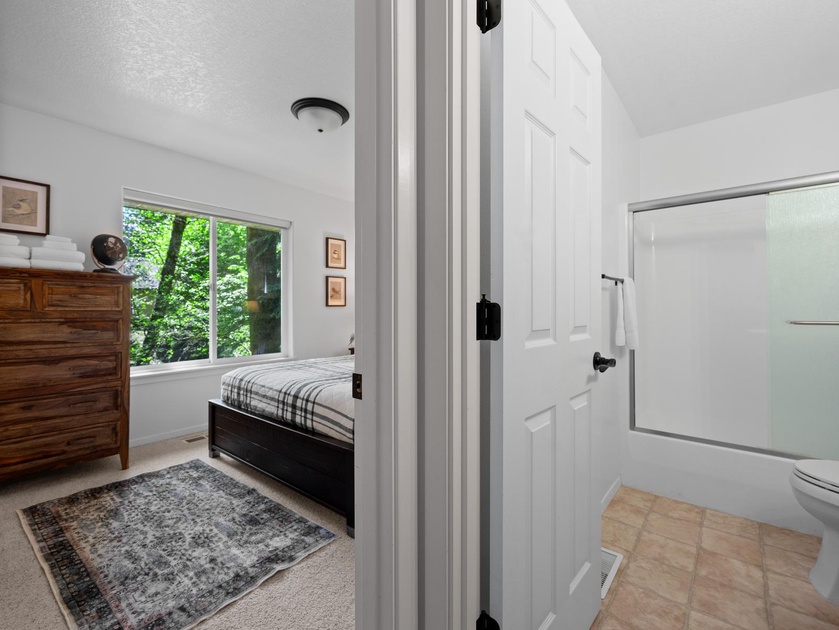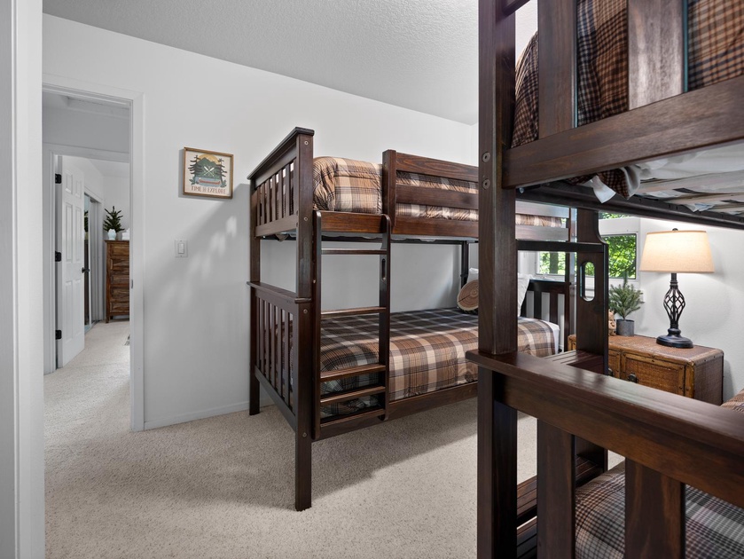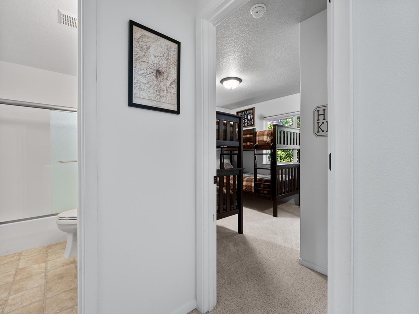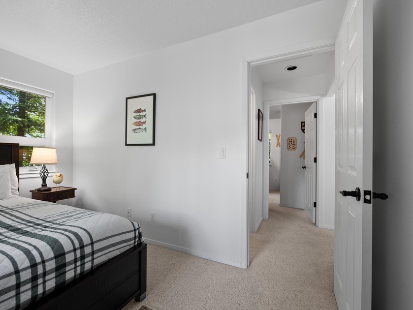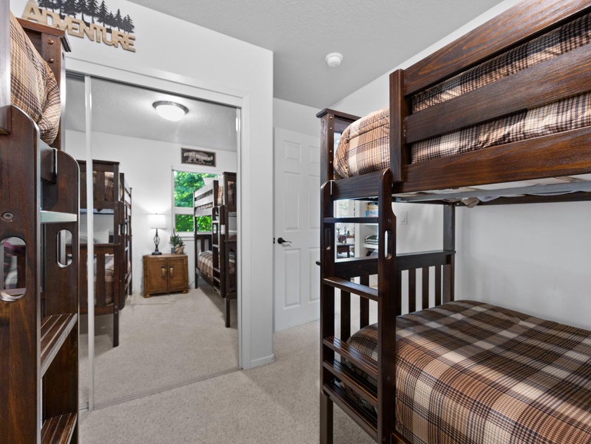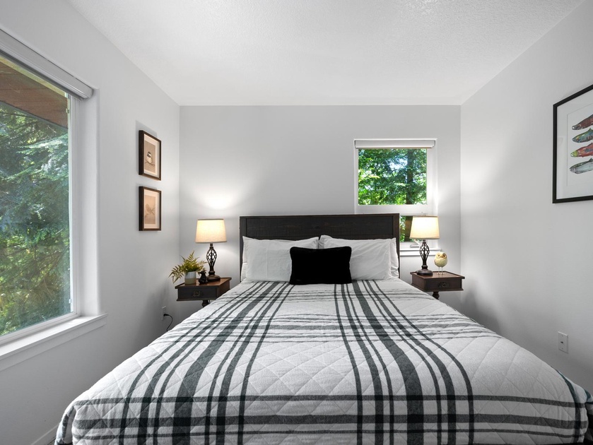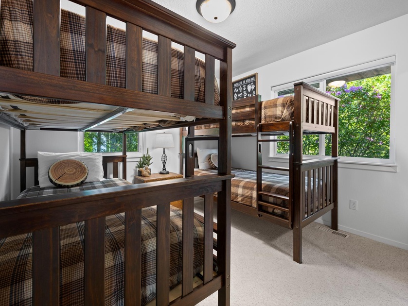 This one level home offers three bedrooms and two full bathrooms. The primary suite offers access to the back deck near the brand new hot tub. The en suite bathroom has a walk in shower with a towel warmer. The two additional bedrooms are located on the opposite side of the home. The queen bedroom has views of Hackett Creek. The bunk room will be a great escape for the kids in the group. The 2nd bathroom is located in the hallway between the two bedrooms.