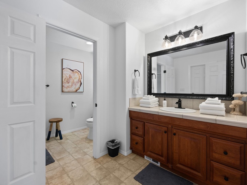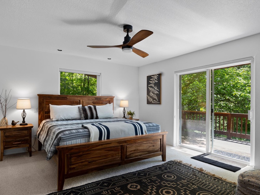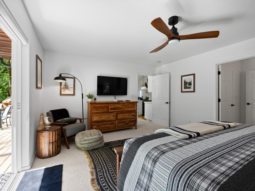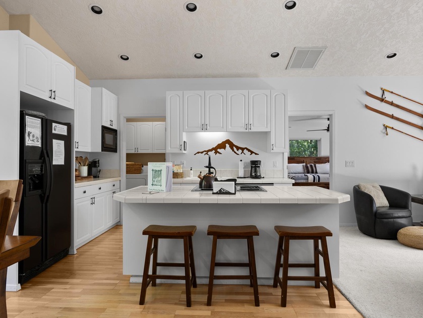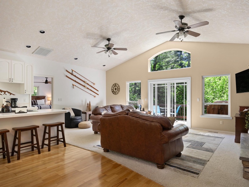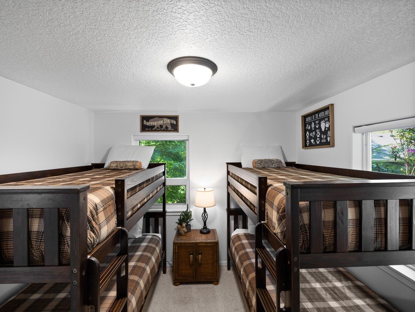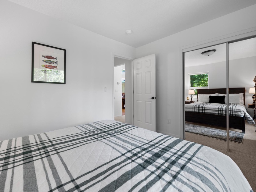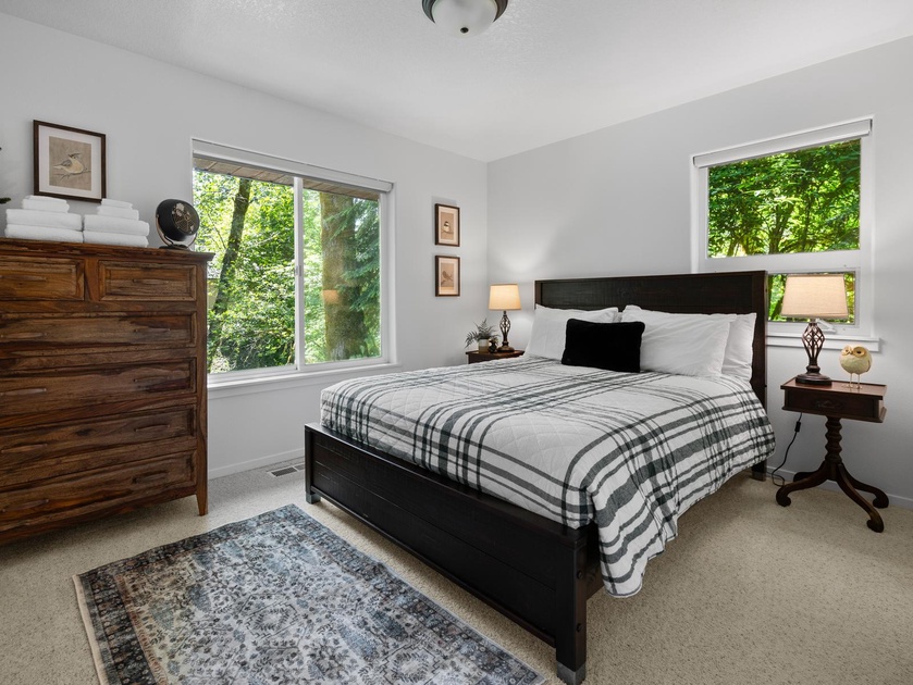 This one level home offers three bedrooms and two full bathrooms. The primary suite offers access to the back deck near the brand new hot tub. The en suite bathroom has a walk in shower with a towel warmer. The two additional bedrooms are located on the opposite side of the home. The queen bedroom has views of Hackett Creek. The bunk room will be a great escape for the kids in the group. The 2nd bathroom is located in the hallway between the two bedrooms.