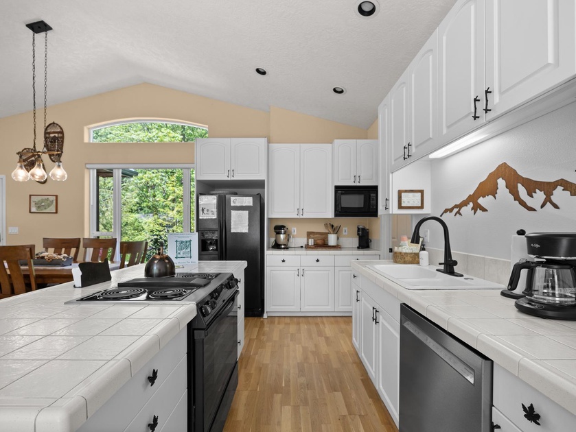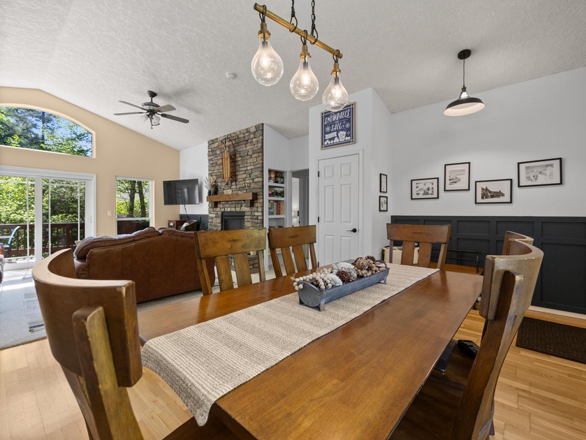 This cabin is the perfect blend of Mt Hood coziness with modern updates throughout. The vaulted great room with spacious kitchen, gas fireplace and 6-seat dining table is ideal for gathering together for meals, playing games, watching TV or listening to the Victrola record player. There are plenty of windows with southern exposure that bring in lots of natural sunlight. The garage also doubles as a game room with a shuffle board and foosball table. This 3-bedroom cabin is perfect for a family vacation.