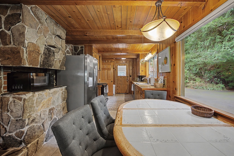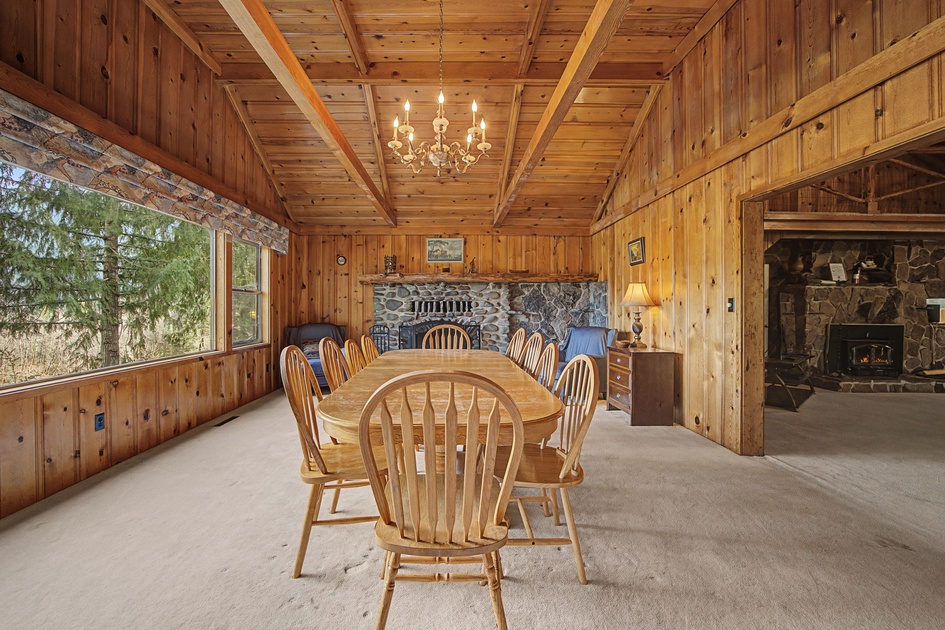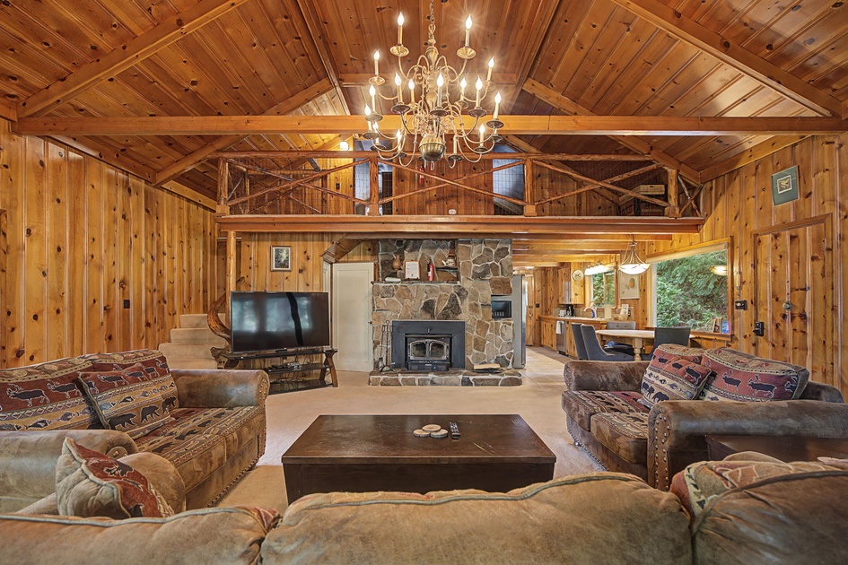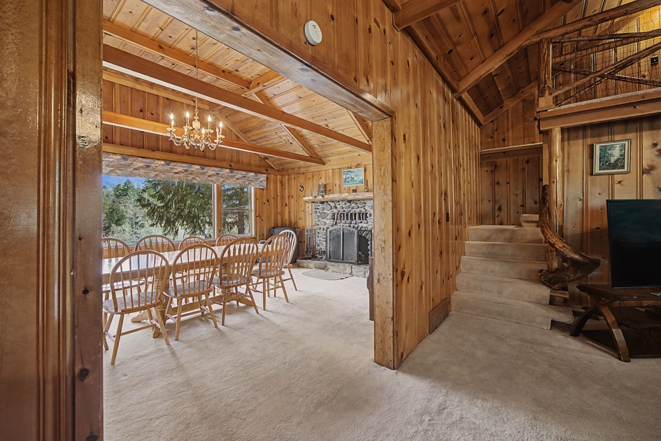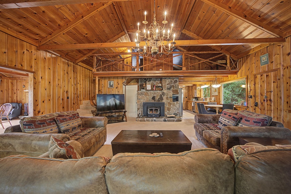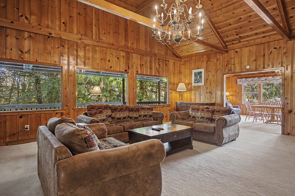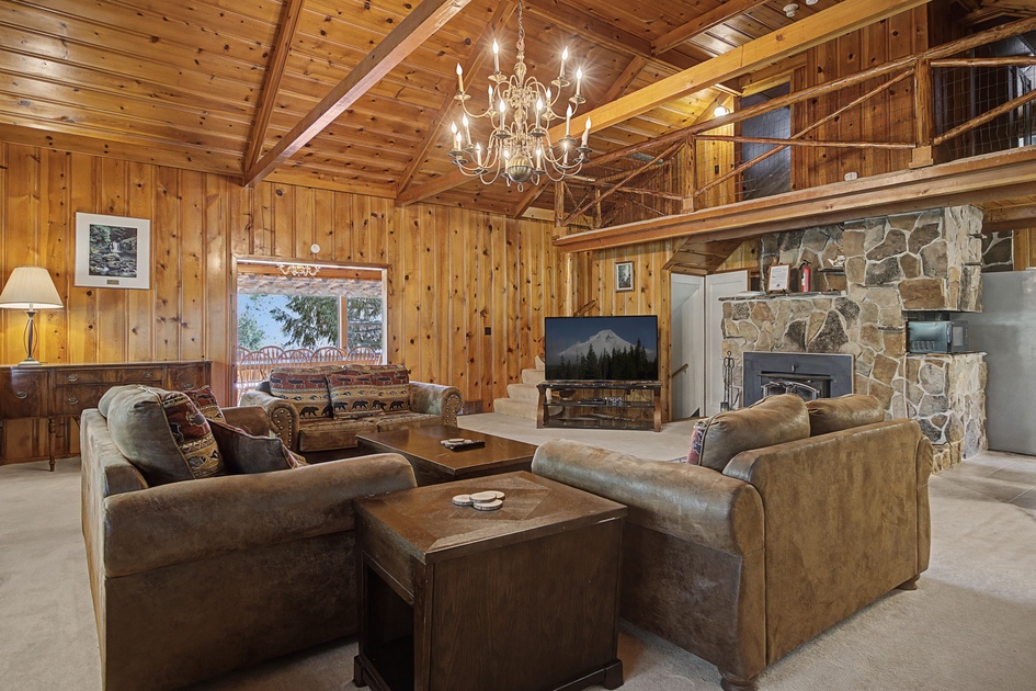 Nestled in the heart of Welches, the Crystal Creek Chalet offers a luxurious retreat that perfectly blends comfort with adventure. This expansive 4-bedroom, 3-bathroom home comfortably sleeps up to 10 guests, making it an ideal choice for family getaways or group vacations. As you step inside, you'll be greeted by a spacious, open-concept living area with high ceilings and large windows that flood the space with natural light. The living room features a cozy fireplace, perfect for those chilly evenings, and a smart TV for your entertainment needs.