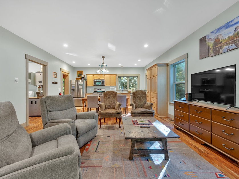 Custom built 2019 riverfront cabin crafted by 3rd generation family members to continue the memories made here for decades. You will create life-long memories, too, whether relaxing by the river or in the hot tub or reclining in the great room with a good book and a glass of wine. The gourmet kitchen includes a gas cooktop, top-of-the-line cookware and all of the extras you need to prepare a fabulous meal. Grill out on the gas BBQ on the riverside deck year-round.