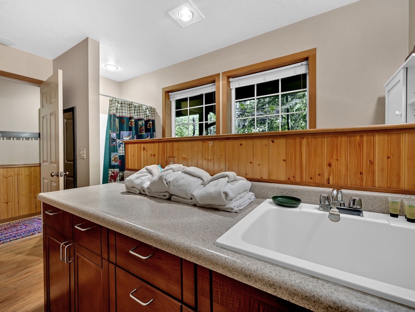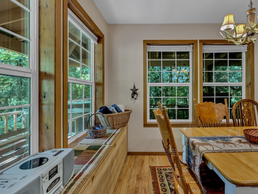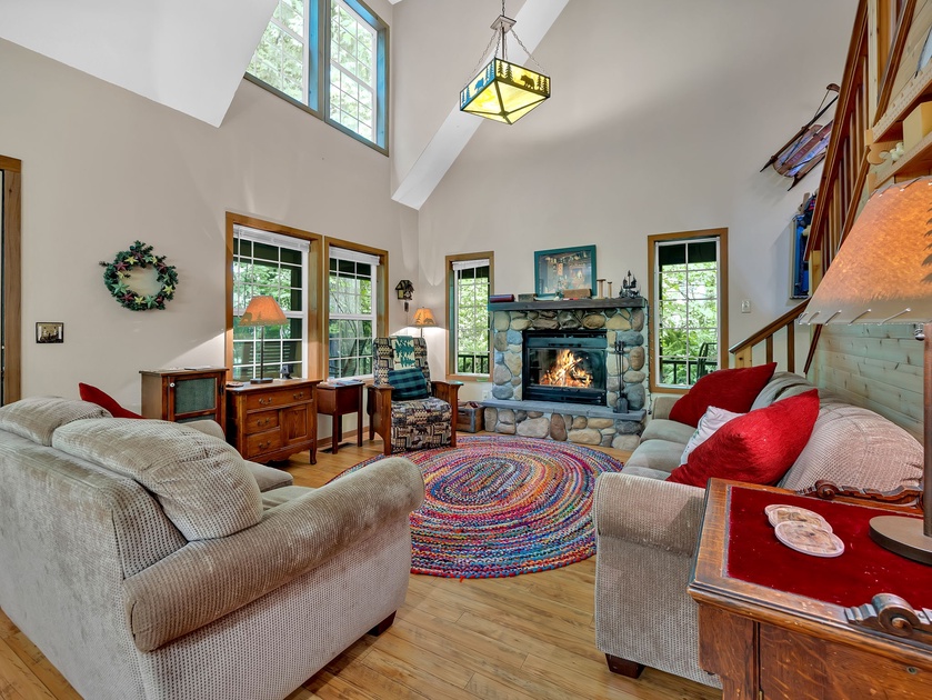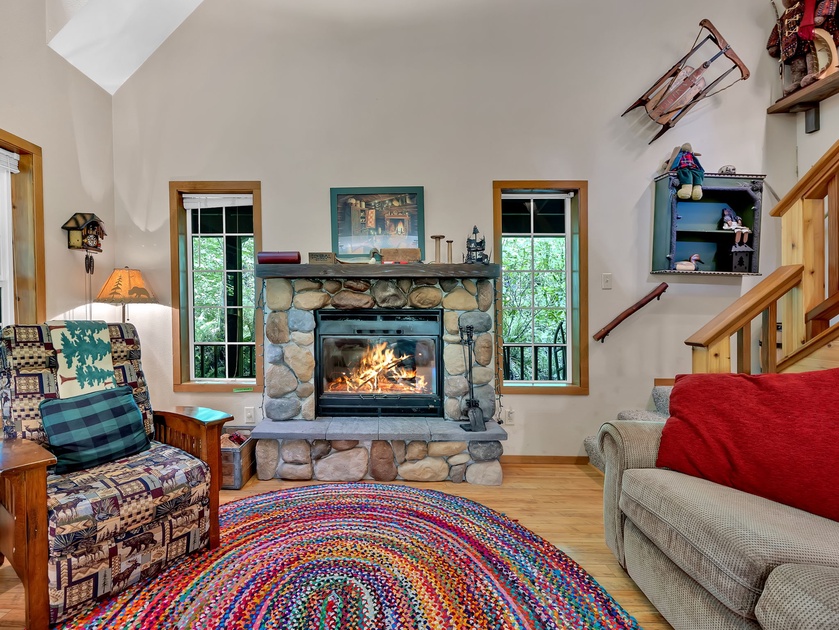 Step onto the spacious wrap-around porch and take in the soothing sounds of the flowing river—an ideal spot for your morning coffee or an evening glass of wine under the stars. Inside, you’ll find a warm and inviting atmosphere with a well-appointed kitchen, comfortable living spaces, and thoughtful touches throughout.