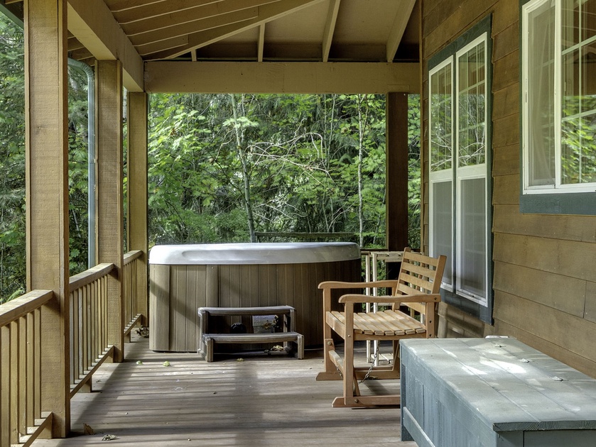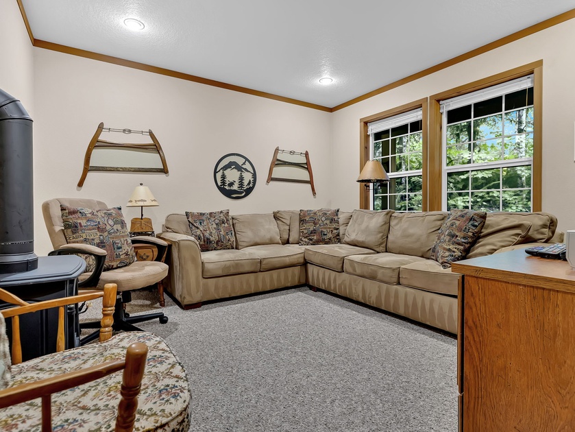 This home sleeps up to 8 guests comfortably, making it perfect for family getaways or gatherings with friends. After a day of adventure—whether hiking, skiing, or simply exploring the wilderness—unwind in the private hot tub beneath the canopy of evergreens.