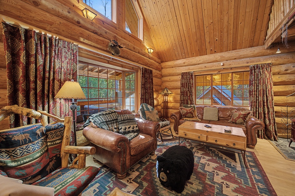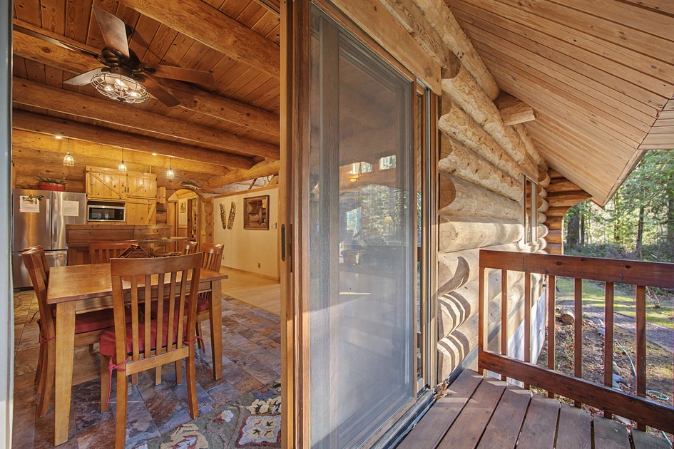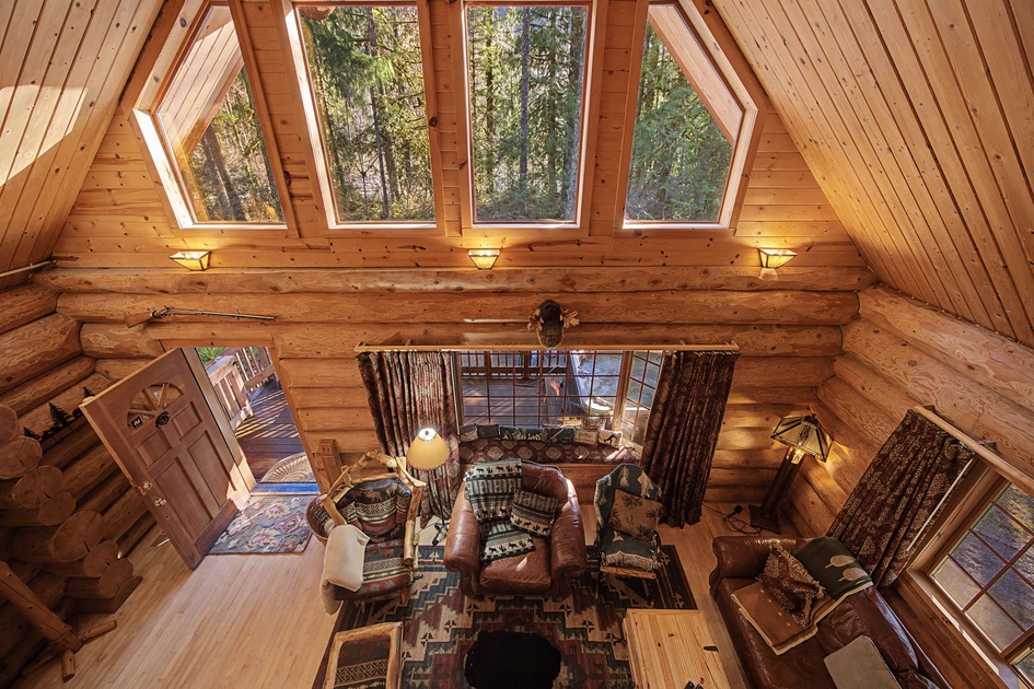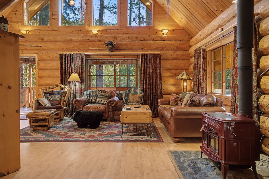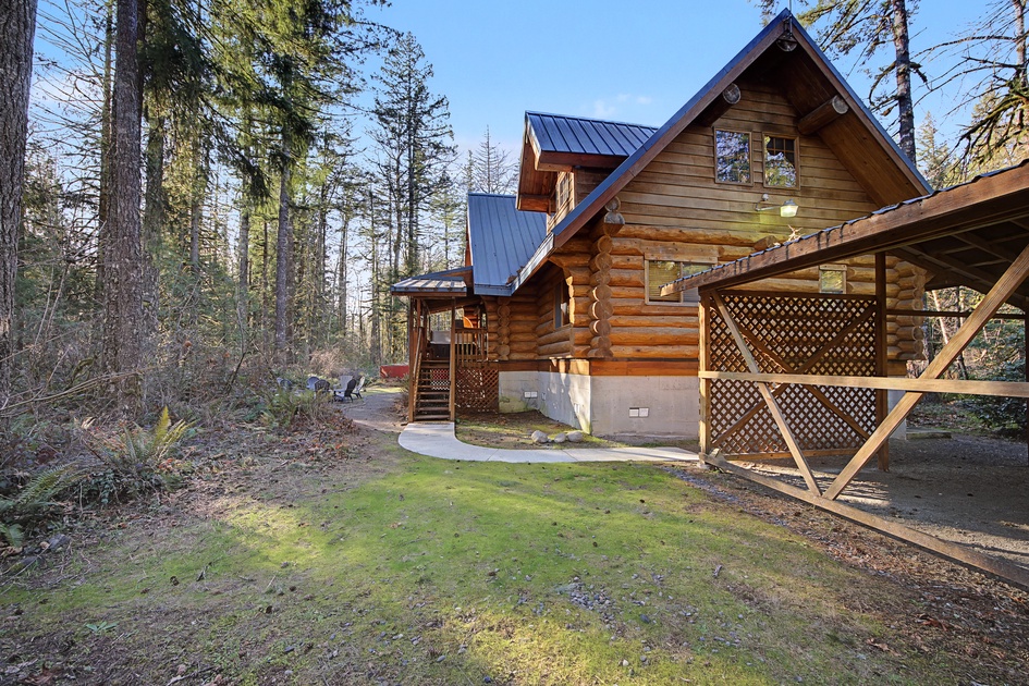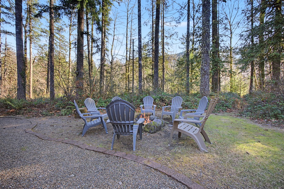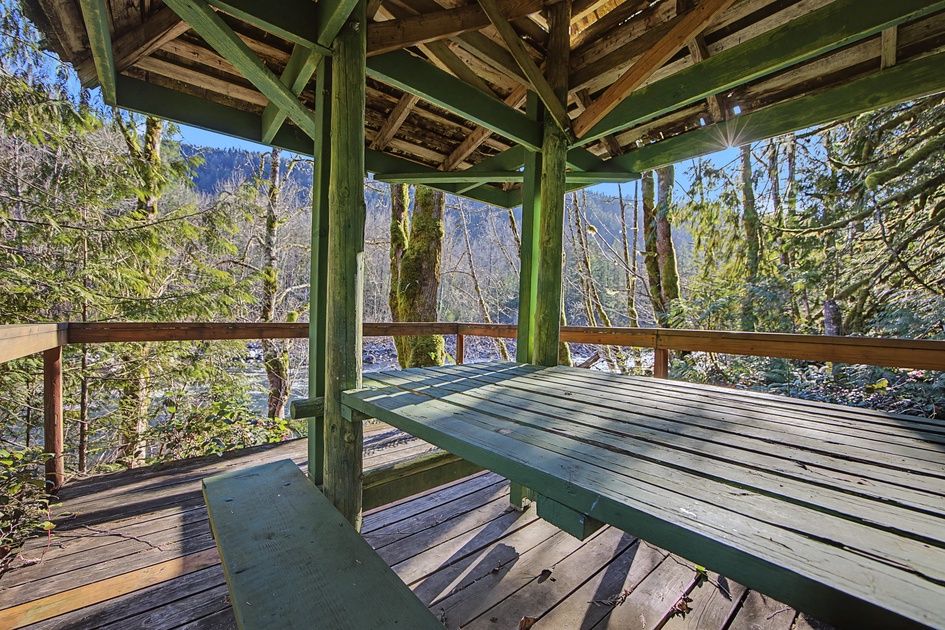 Riverwoods Lodge is the log cabin retreat you dream of when you head to Mt Hood, nestled on 4 private, gated acres along the Sandy River. Bring your bikes, fishing poles and books because you can do it all from this home. Sitting by the Sandy River at the picnic table in the gazebo will relax and rejuvenate you. Enjoy a picnic lunch, read a book or sip a glass of wine while dreaming away the afternoon. Warm your hands around the firepit during the evening and share fun stories of the day’s explorations around Mt Hood.