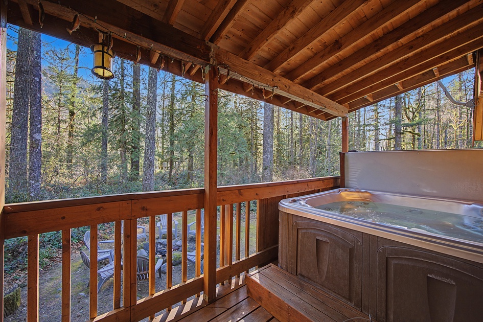 This private setting is perfect for visitors who just want to kick back and relax, however if you prefer to be active, there are lots of activities just a few minutes away. Road bike riders and motorcyclists can access Marmot Road from the driveway. Mountain bikers are just 2 miles from the very popular Sandy Ridge Trails. Or cast your line in the Sandy River out the back door. If you have a favorite book you have been wanting to get to, the warm and comfortable great room is the place to be. At the end of the day, take a relaxing soak in the hot tub. Your dogs are welcome to join you for an additional charge; 2 dog maximum.