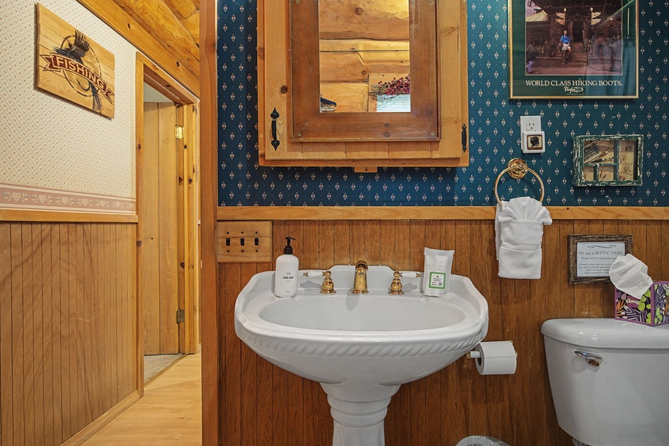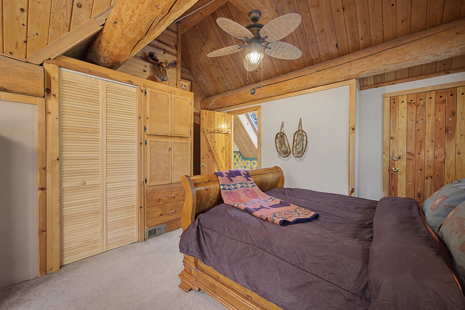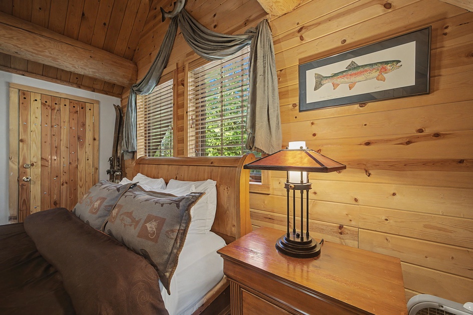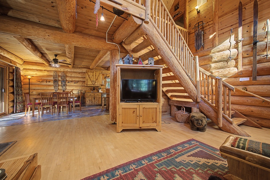 You will stay and warm and comfortable by the woodstove in the vaulted great room. The newly updated and spacious kitchen provides plenty of room for several cooks preparing a family-style dinner. The 4-bedroom configuration of the Riverwoods Lodge is ideal for one or two families or several friends vacationing together with 1 bedroom (1 double) and full bathroom downstairs and 3 bedrooms (1 queen, 4 twins) and one Âľ bathroom upstairs.