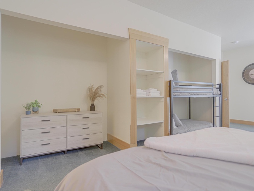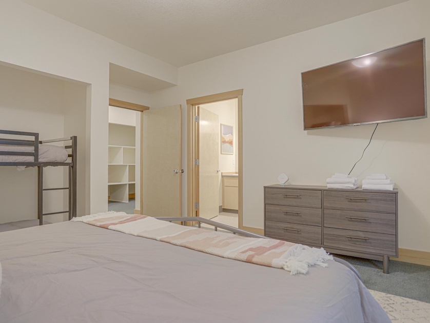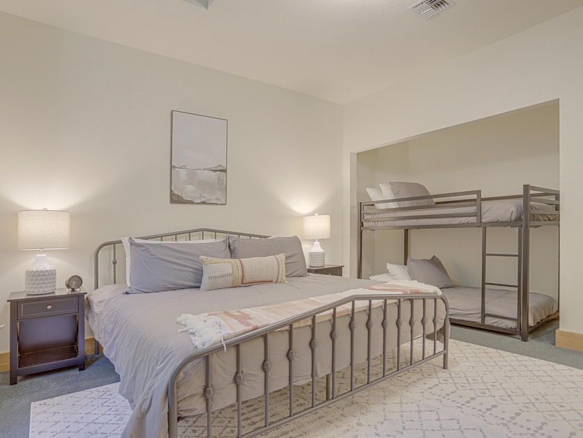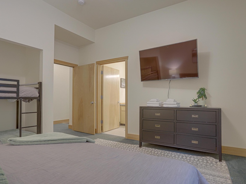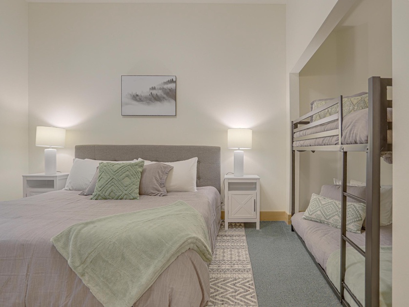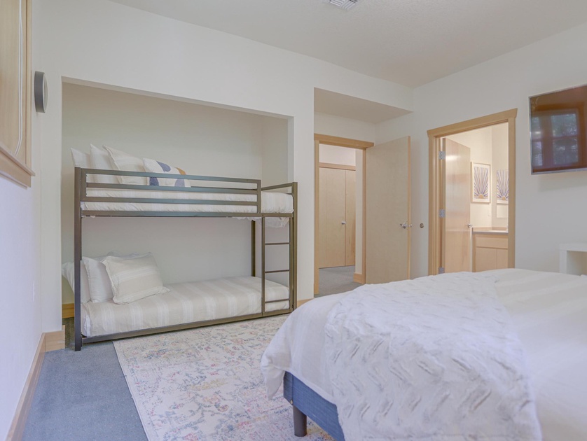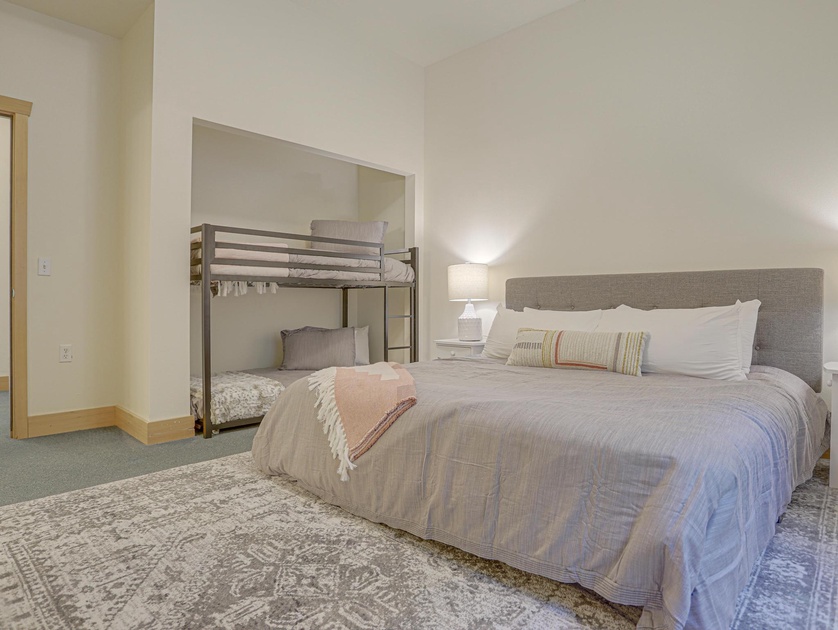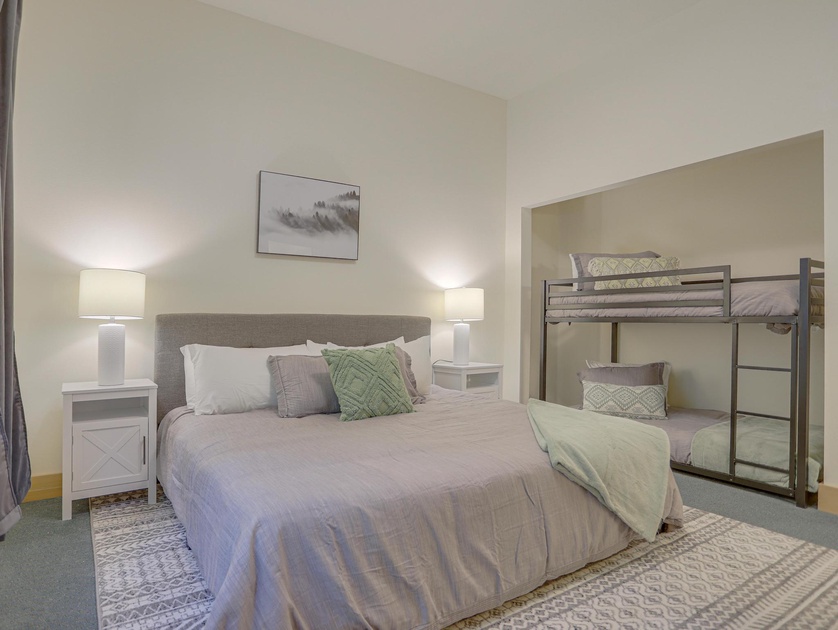 •Bedroom 1 Main Level: One King Bed, One Twin/Twin Bunk Bed, Full Bathroom, TV