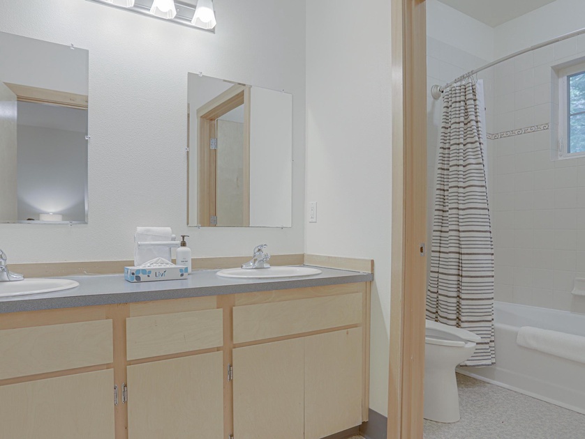 Bedroom 2: One Queen Bed, One Twin/Twin Bunk Bed, Full Bathroom