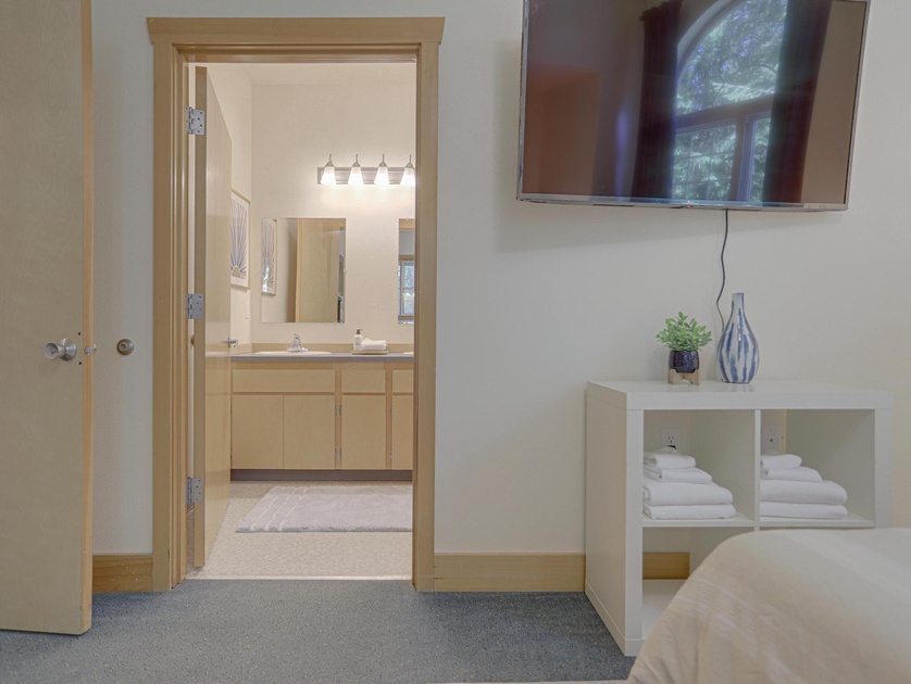Bedroom 1: One Queen Bed, One Twin/Twin Bunk Bed, Full Bathroom, TV