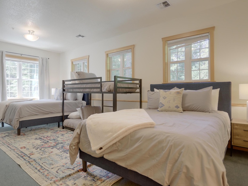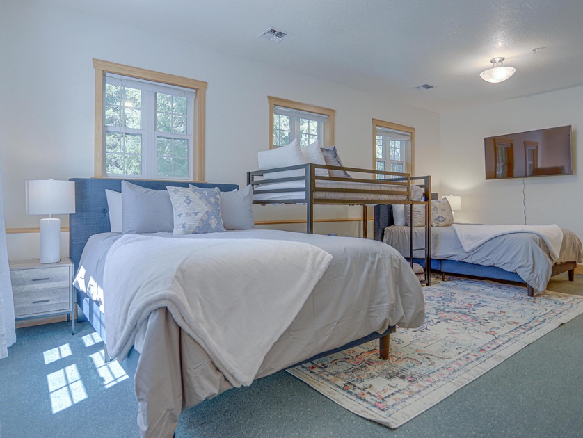 •Bedroom 1 Second Level: Two Queen Beds, One Twin/Twin Bunk Bed, Full Bathroom, TV